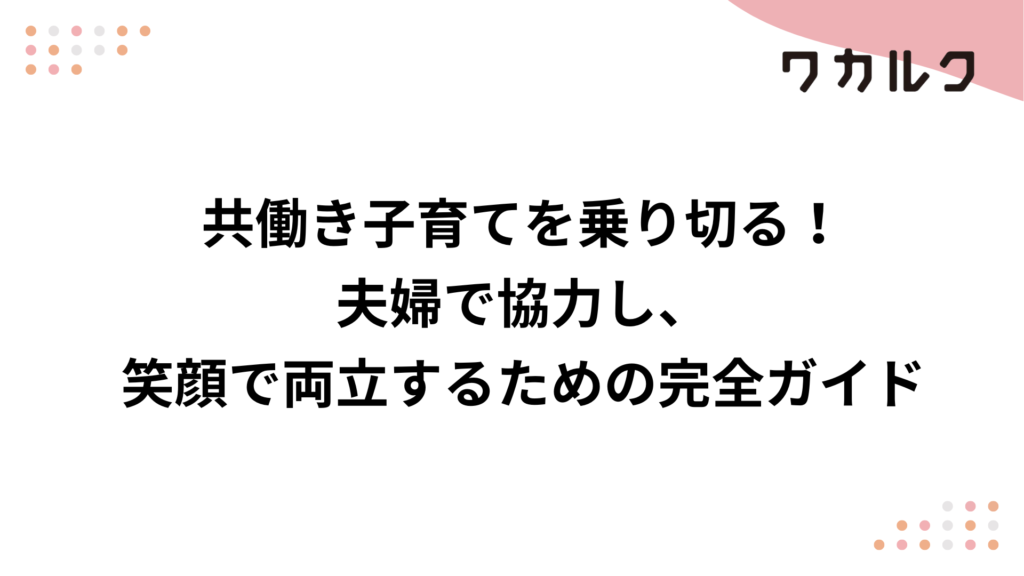 共働き子育てを乗り切る!夫婦で協力し、笑顔で両立するための完全ガイド